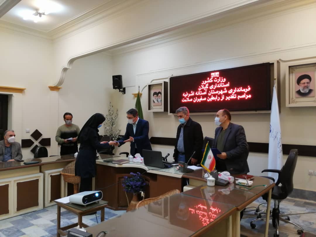 اهدا جوایز توسط فرماندار محترم شهرستان آستانه اشرفیه به سفیرمحله,سفیران سلامت و نیروی بسیجی و هلال احمر