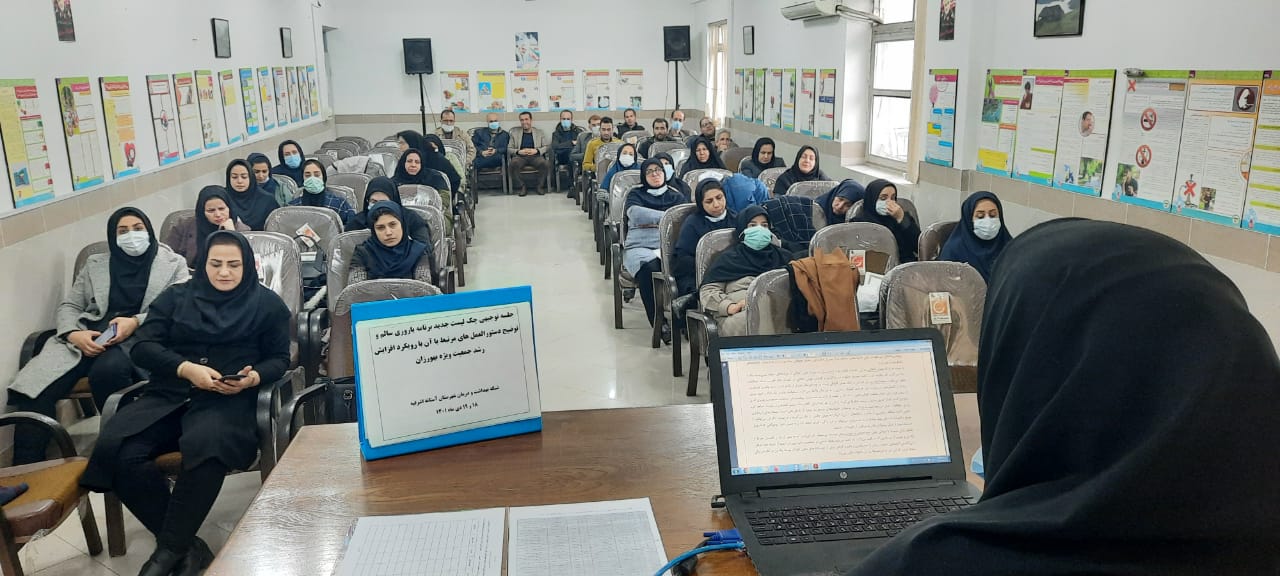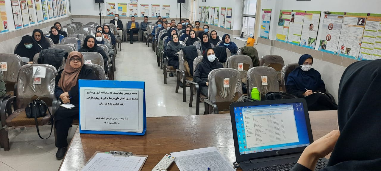 برگزاری جلسه آموزشی و توجیهی چک لیست جدید برنامه باروری سالم و توضیح دستورالعمل های مرتبط با آن با رویکرد افزایش رشد جمعیت، اثرات مثبت بارداری و زایمان طبیعی، فواید فرزندآوری، عوارض سزارین و ....ویژه کلیه بهورزان
