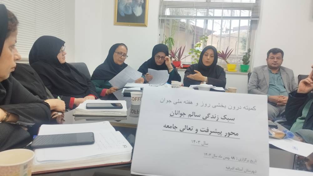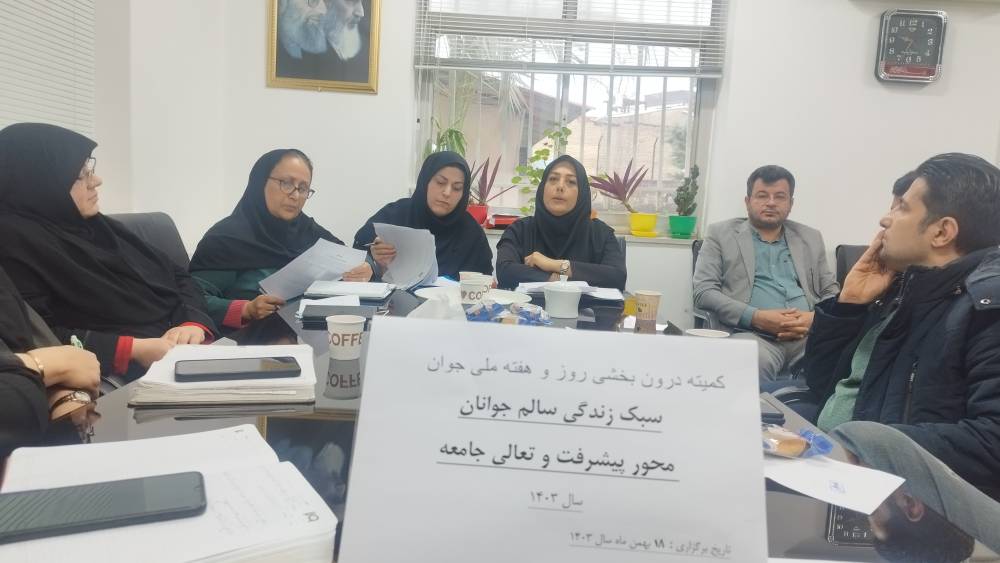 کمیته درون بخشی هفته سلامت جوان با شعار "سبک زندگی سالم جوانان، محور پیشرفت و تعالی جامعه" در دفتر مدیریت شبکه بهداشت شهرستان برگزار گردید.
