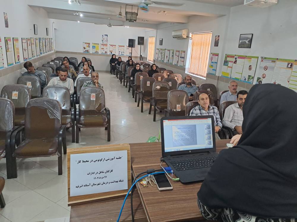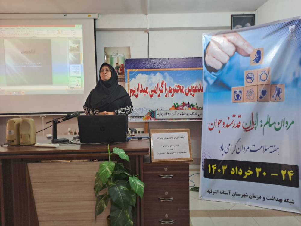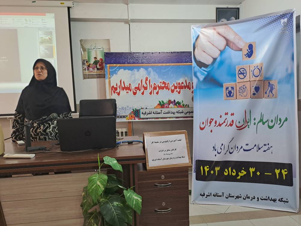 بمناسبت هفته ملی سلامت مردان ایران کارگاه ارگونومی محل کار توسط کارشناس بهداشت حرفه ای شبکه بهداشت آستانه اشرفیه برگزار شد