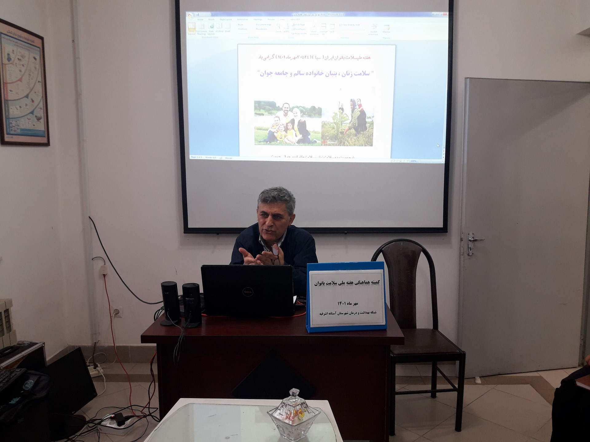 با فرارسیدن هفته ملی سلامت بانوان ایران ( 24 تا 30 مهر ماه ) و اهمیت سلامت زنان بعنوان نقش محوری در مدیریت سلامت به همین منظور ، جلسه ای رأس ساعت 10و 30 دقیقه مورخ 25/7/1401 با حضور مدیر شبکه  بهداشت ، مسئولین ادارات و کارکنان ستادی شبکه بهداشت در آموزشگاه بهورزی برگزار گردید